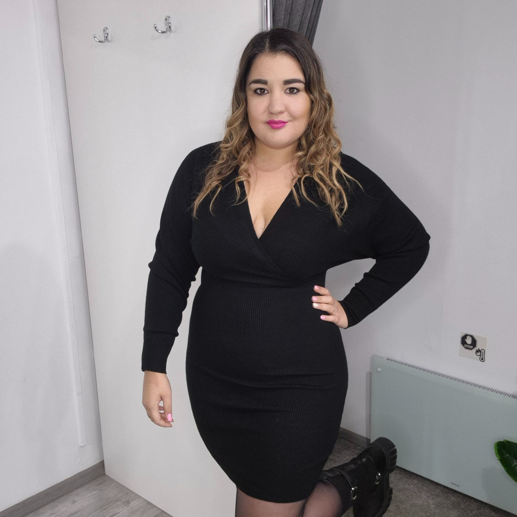 Fekete Gépi kötésű Átlapolt Ruha